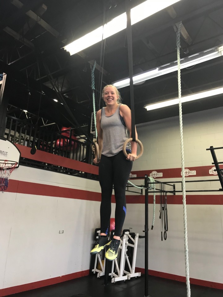 Happy girl landing her muscle up!
